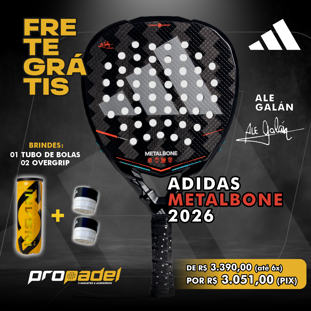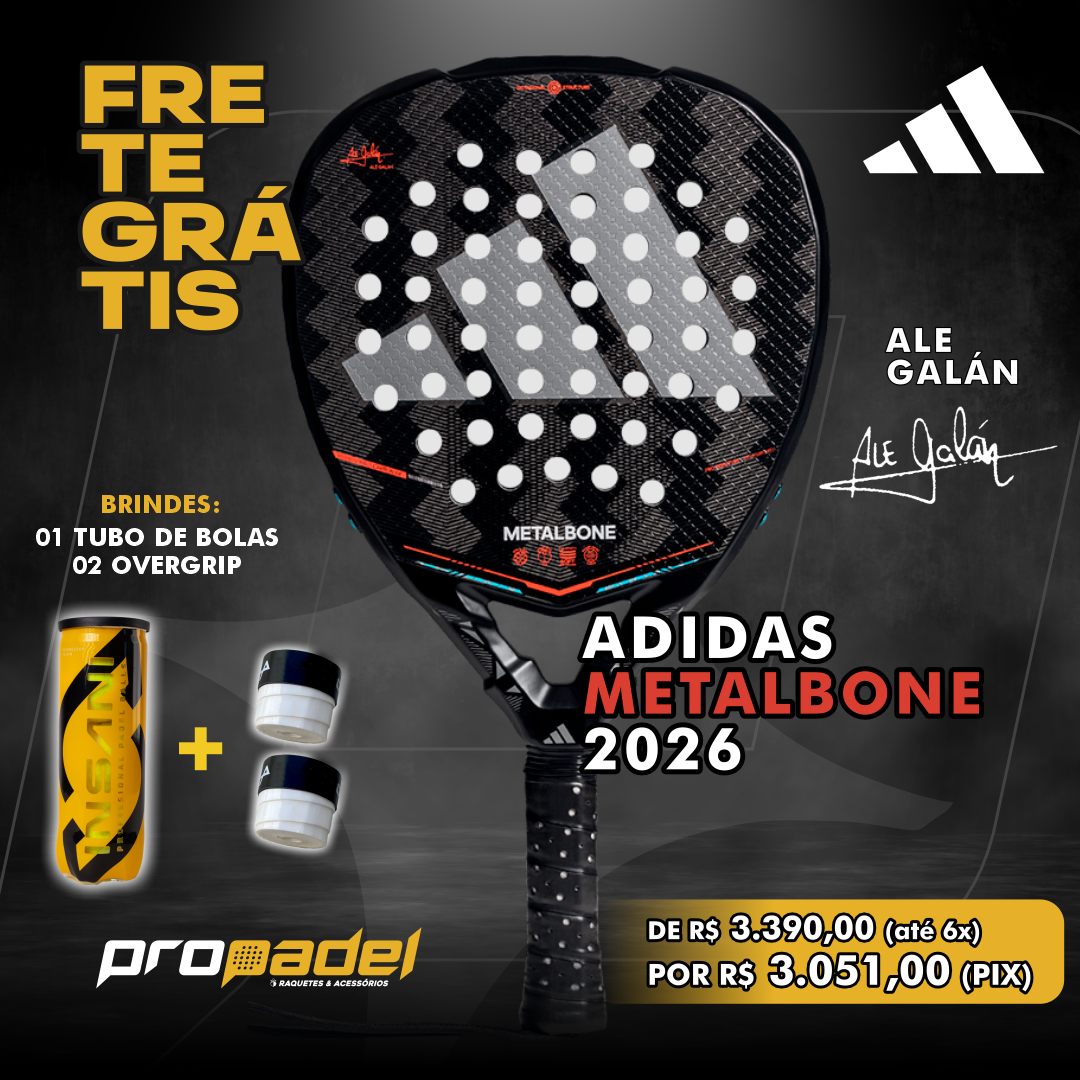 Potência total em uma raquete. A adidas Metalbone 2026, escolha de Ale Galán, eleva a inovação com o Weight & Balance System, permitindo personalizar o balance e as sensações de acordo com sua estratégia. A Octagonal Structure e o design Low Poly oferecem estabilidade e aceleração imparáveis, enquanto o Carbon Aluminized 16K libera potência explosiva com confiança. O Spin Blade Decal incorpora um relevo que melhora a sensação de controle e permite gerar mais efeito em cada golpe. A borracha Soft Performance EVA, de baixa densidade, oferece excelente saída de bola e proporciona conforto durante todo o jogo. O Extra Power Grip, graças ao cabo mais longo, aumenta a inércia da raquete e reforça os golpes decisivos. Desenvolvida em conjunto com Ale Galán, esta raquete foi criada para jogadores que buscam desempenho, controle e potência em cada ponto. Este ano apresentamos uma grande novidade: a nova corda ajustável com munhequeira acolchoada, que garante o máximo de conforto no pulso.