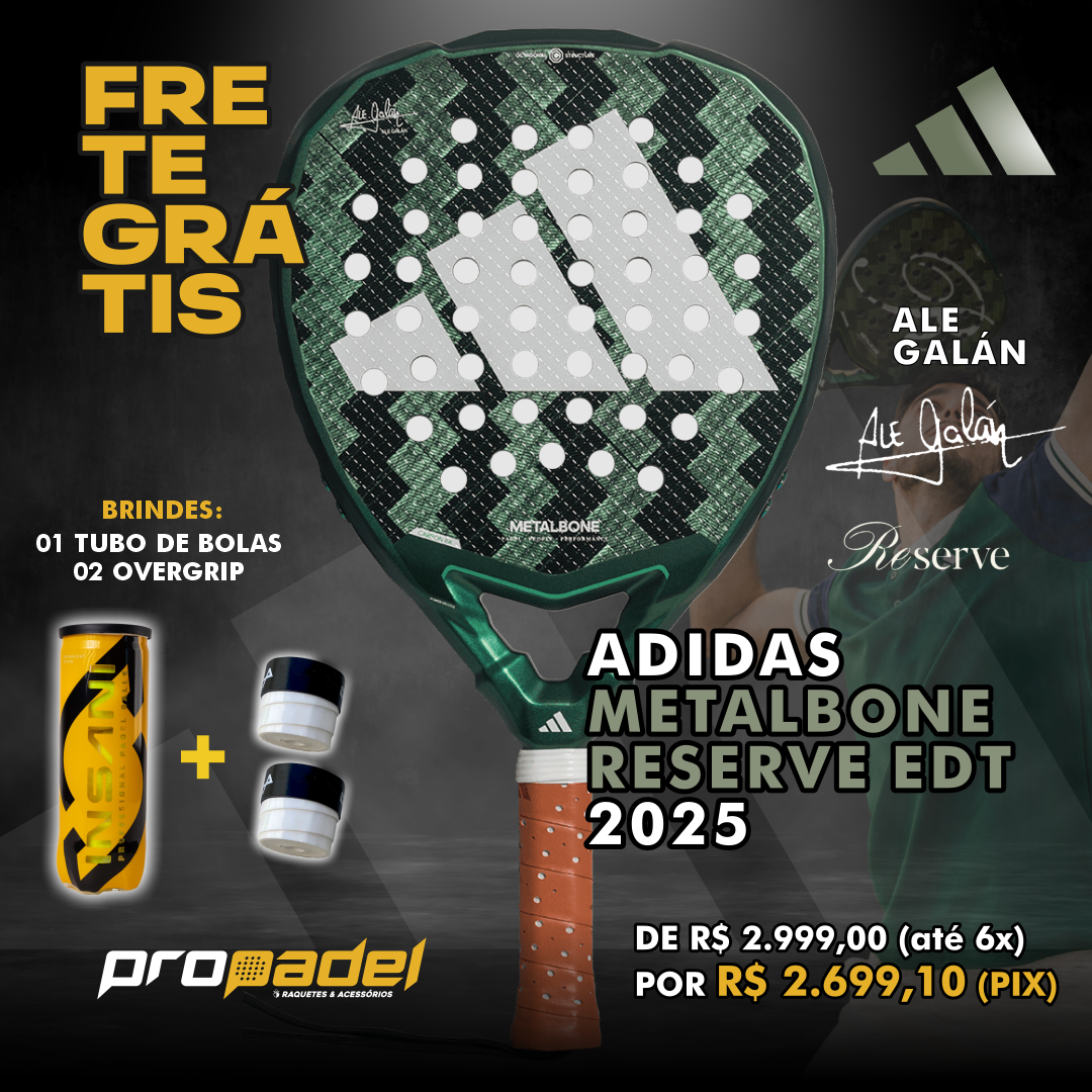A adidas Metalbone Reserve EDT, assinada por Ale Galán, é a raquete definitiva para jogadores de padel de alto nível, projetada exclusivamente para a Reserve Cup. Combinando tecnologias avançadas e materiais de primeira qualidade, esta raquete é ideal para quem procura um desempenho superior. A Octagonal Structure reduz a torção, oferecendo uma precisão incrível a cada golpe, enquanto o Power Extra Grip melhora a inércia e permite golpes mais rápidos e poderosos. O design Low Poly no quadro e no coração otimiza a rigidez estrutural, proporcionando um excelente controlo nos golpes mais exigentes. Além disso, o relevo Spin Blade Decal garante um controlo perfeito para executar efeitos de alta precisão. Com uma goma EVA Soft Performance e fibra de Carbono 6K, a Metalbone Reserve EDT oferece um equilíbrio entre controlo e potência, adaptando-se perfeitamente ao jogo ofensivo. Com a estética exclusiva e a tecnologia de ponta, a adidas Metalbone Reserve EDT não é apenas uma ferramenta de alto desempenho, mas também um símbolo de exclusividade no padel durante a Reserve Cup. Perfeita para quem procura o melhor no seu jogo.