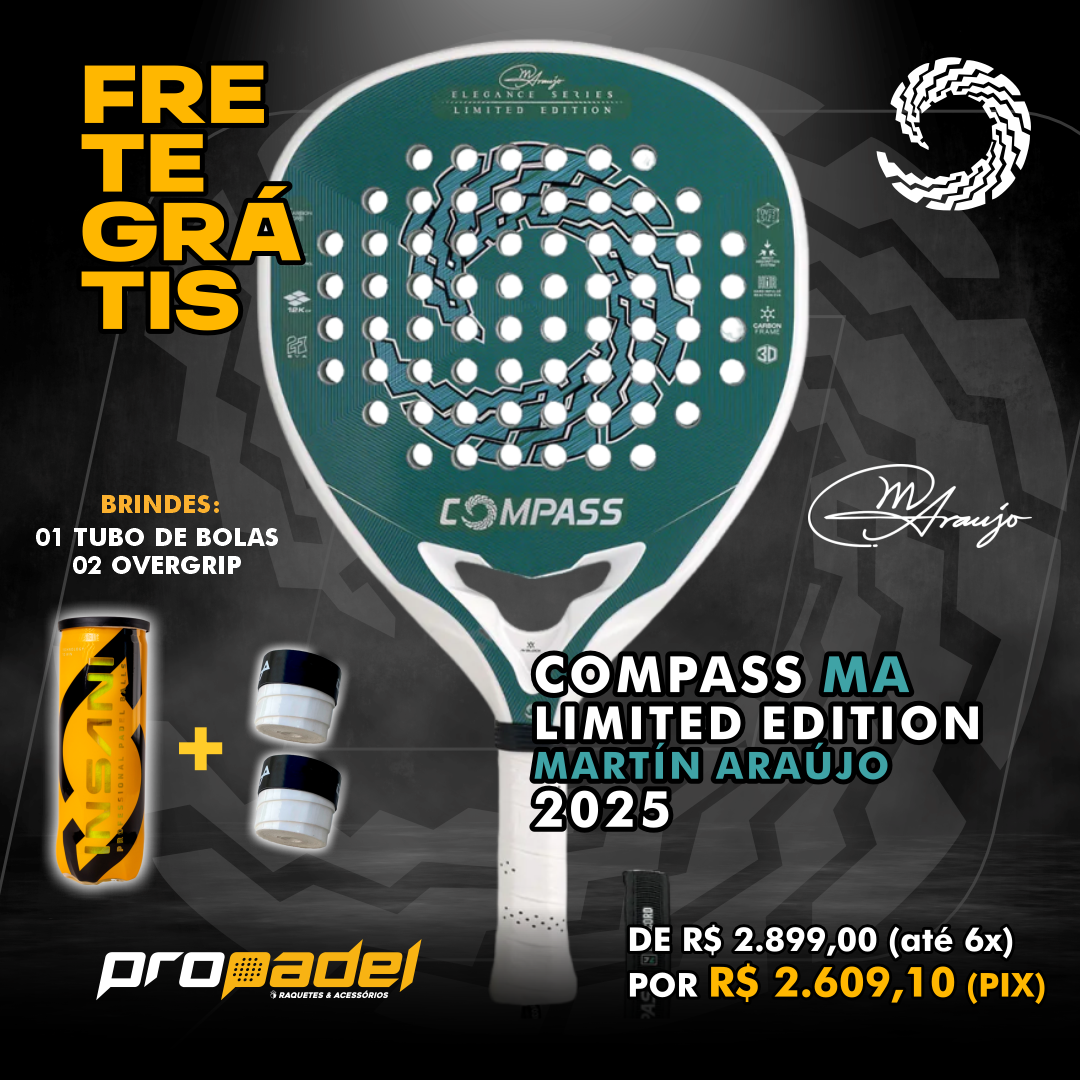 Martín Araújo assina esta edição especial da coleção Compass Limited Edition, com poucas unidades produzidas e identidade única. Criada para quem busca sua melhor versão dentro de quadra, essa raquete traduz o jogo inteligente e técnico do atleta uruguaio.
