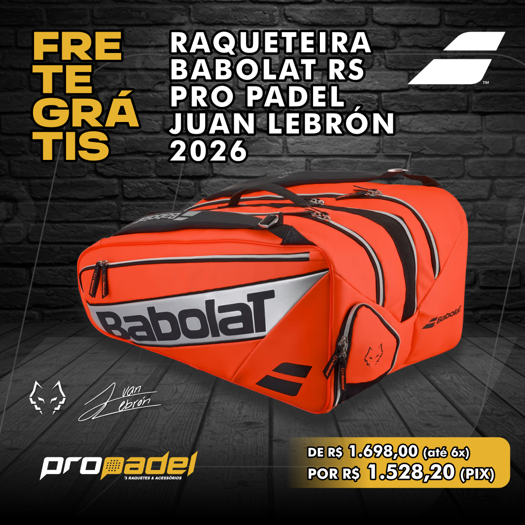 A Raqueteira Babolat RS Pro Padel Juan Lebrón foi desenvolvida para jogadores que exigem alto nível de organização e capacidade no transporte do seu equipamento. Inspirada na parceria com um dos principais nomes do padel mundial, combina estrutura funcional com um design marcante.