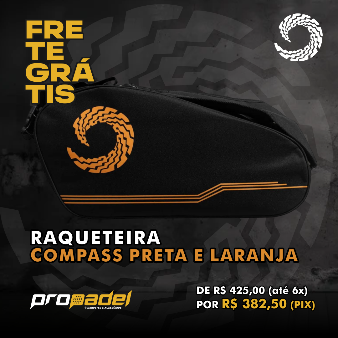 Com design moderno, a Raqueteira Compass Preto com Laranja é prática para transportar suas raquetes e acessórios. Além do tamanho médio, seu formato mochila facilita a locomoção.