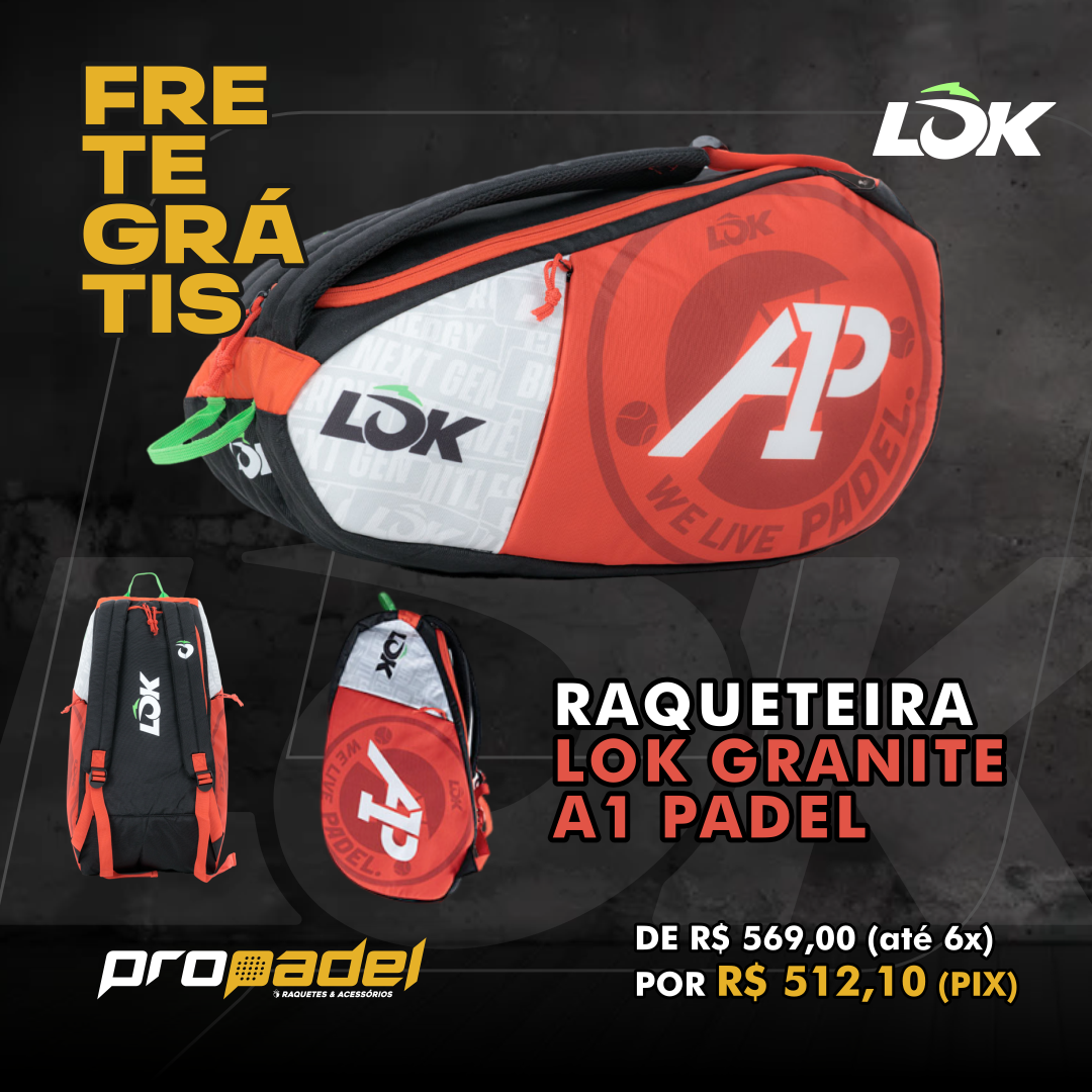 A LOK Granite A1 é a solução perfeita para suas viagens! Espaçosa e durável, a bolsa de padel LOK é ideal para jogadores que buscam excelente capacidade e boa proteção ao transportar suas raquetes para a quadra.