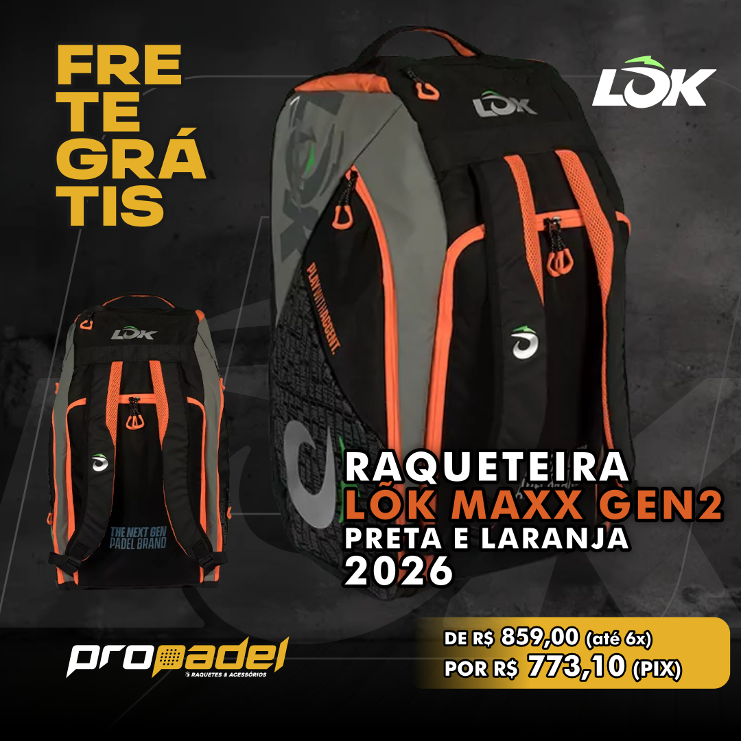 A RAQUETEIRA MAXX GEN2 PRETA E LARANJA possui as características a seguir: